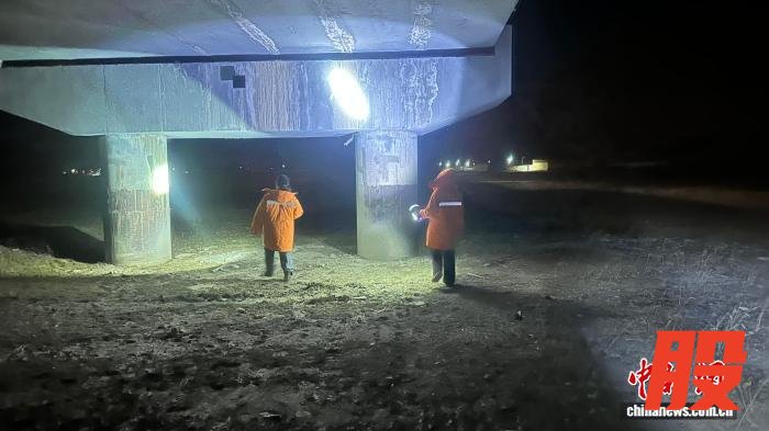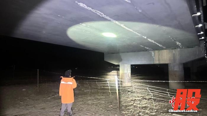 图为12月2日晚,地震发生后,西藏那曲公路养护部门工作人员排查公路设施。(西藏自治区交通运输厅供图)